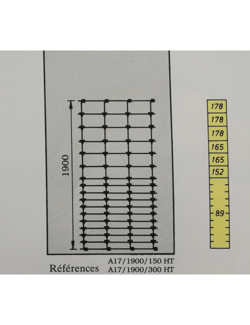 18 fils horizontaux, fils verticaux espacés de 300mm