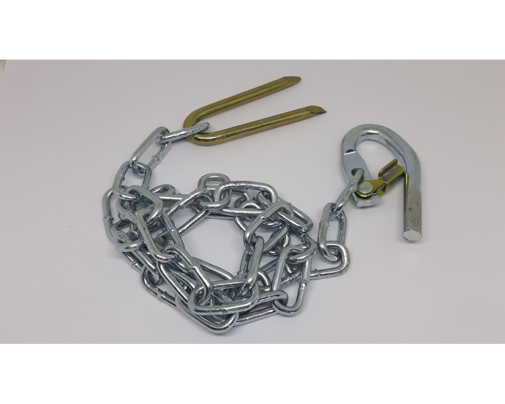 Le crampon fixe la chaîne sur le pieu bois pour maintenir celle-ci à sa place même lorsque la porte est ouverte.